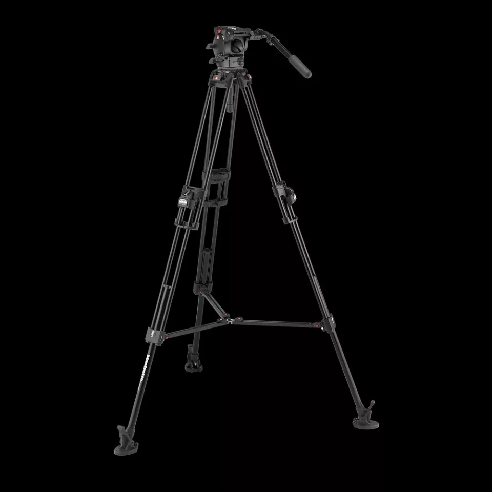 A szett része a 645 Fast Twin Alu állvány, amely ikerlábakkal és innovatív Ultra L-Lock zármechanizmussal rendelkezik. Ez a rendszer lehetővé teszi, hogy a felső és alsó zár egyszerre működjön, így a videós egyetlen mozdulattal stabilizálhatja az állvány teljes lábszerkezetét. Az állvány dupla csészemérettel (100 mm és 75 mm adapter) van ellátva, amely maximális kompatibilitást biztosít a különféle fej típusokkal. A három választható lábszög (20°, 50°, 70°) és a 2in1 teleszkópos terpesz rendszer lehetővé teszi, hogy a közép- és földterpesz egyaránt használható legyen, alkalmazkodva a forgatási környezethez. A tüskés lábak gumi talppal erős tapadást biztosítanak, így a szett kültéren és beltéren egyaránt stabilan működik.