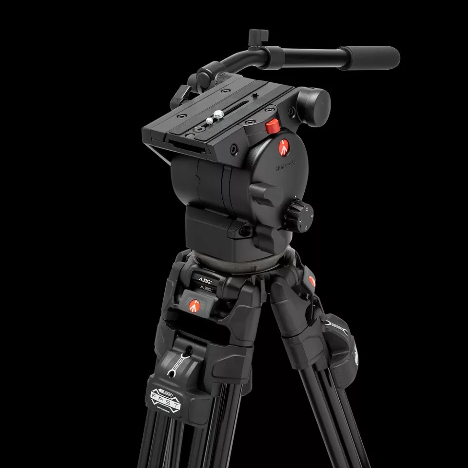 Manfrotto 526 Pro Video fej + 645 Fast Alu állvány, 2in1 terp. ikerláb