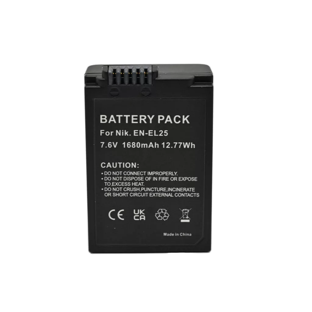 Választásával nem csak a kényelmet, hanem a környezettudatosságot is előtérbe helyezi. Az EN-EL25 újratölthető, így csökkenti az eldobható elemek használatát, ami pozitív hatással van a környezetre.