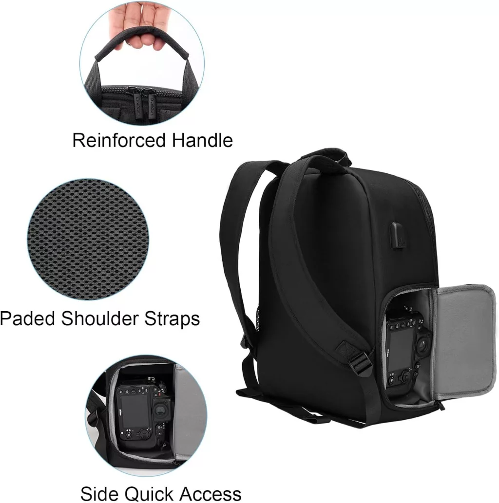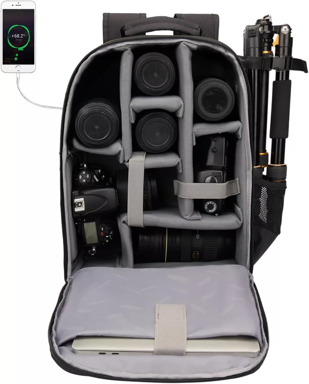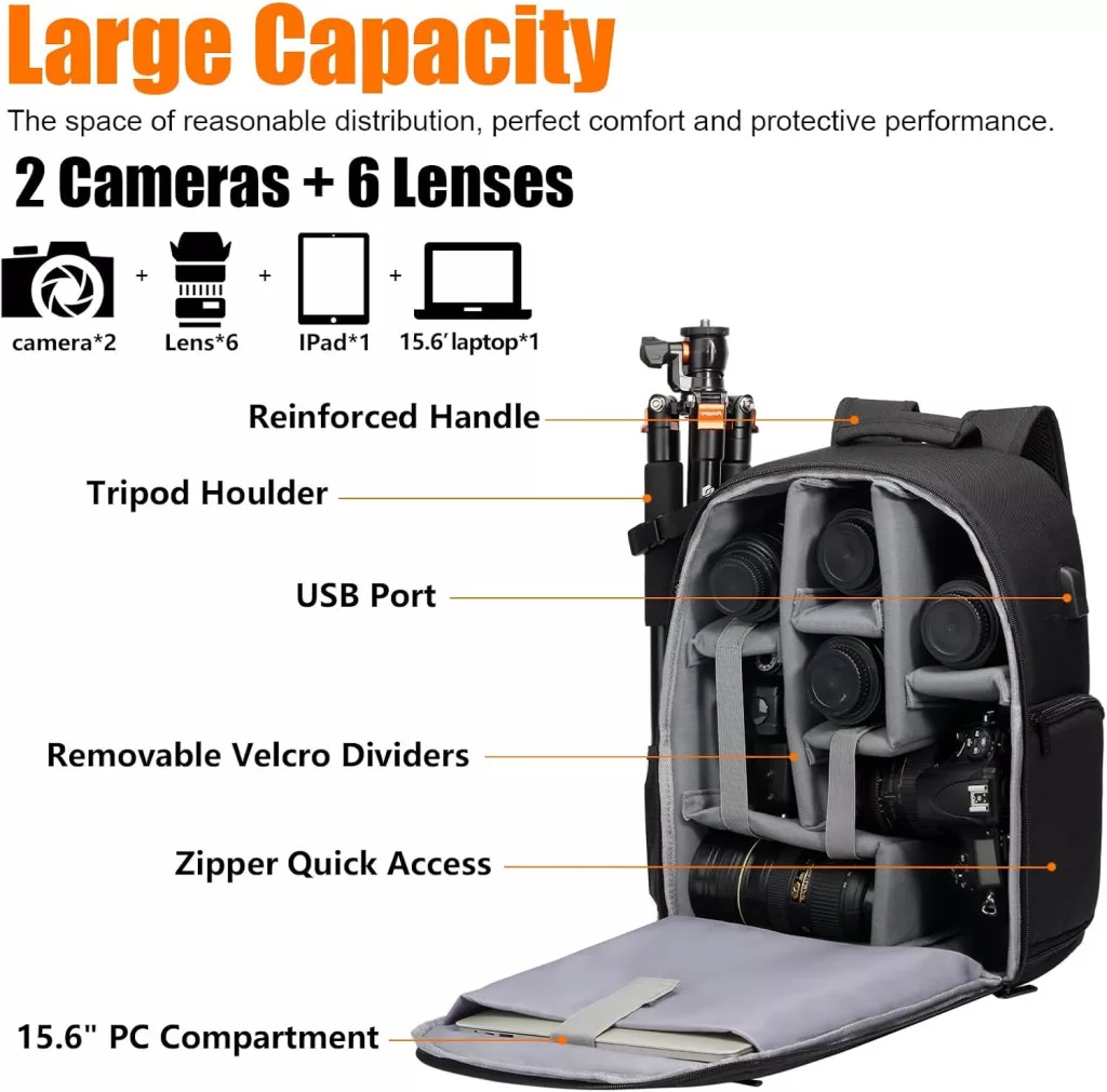 A CADeN D10 professzionális fényképezőgép hátizsák nagy kapacitásával és praktikus kialakításával ideális választás fotósok számára. Vízálló anyagból készült, így megbízható védelmet nyújt felszerelésednek esős időben is. Kényelmes viseletet biztosít a párnázott vállpántokkal és az ergonomikus kialakítással, miközben gyors hozzáférést nyújt a felszereléshez.