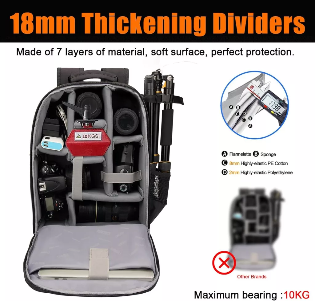 A hátizsák tágas belső kialakítása lehetővé teszi, hogy egyszerre több fényképezőgépet, objektívet és egyéb kiegészítőt is rendezetten tárolj, így ideális választás akár profi felhasználásra is. A belső elválasztók variálhatók, így igényeid szerint alakíthatod ki a tárolóhelyeket, legyen szó fotós felszerelésről vagy akár drónról. A 7 rétegű ütéscsillapító védelem gondoskodik arról, hogy eszközeid biztonságban legyenek szállítás közben is. A dupla fejű, ötvözött cipzár sima működést biztosít, így gyorsan hozzáférhetsz a felszerelésedhez anélkül, hogy elakadna. A vállpántok memóriahabbal párnázottak és légáteresztő kialakításúak, ezért hosszabb használat során is kényelmes viseletet nyújtanak.