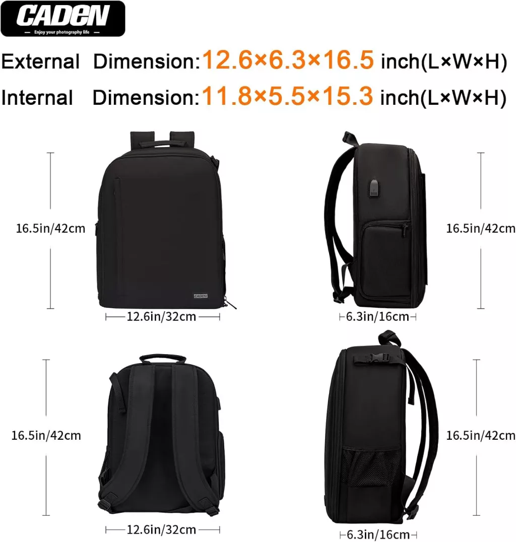 CaDen D6-4L fotós hátizsák - 35L vízálló kamera táska (fekete)