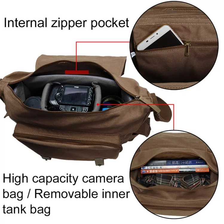 A táska nagy sűrűségű, kopásálló vászonból készült, így tartós használat mellett is megőrzi formáját és védelmi funkcióját. A belső rész puha párnázattal védi a fényképezőgépet és az objektíveket az ütésektől. A levehető „belső tanknak” köszönhetően a táska egyetlen mozdulattal átalakítható hétköznapi váll- vagy messenger táskává. A széles és csúszásgátló vállpánt kényelmes hordást biztosít hosszabb séták vagy fotótúrák során is. A tágas rekeszekbe a kamera felszerelés mellett akár telefon, pénztárca, kisebb ruhadarab vagy könyv is elfér, így ideális választás városi fotózáshoz, kirándulásokhoz és utazásokhoz.