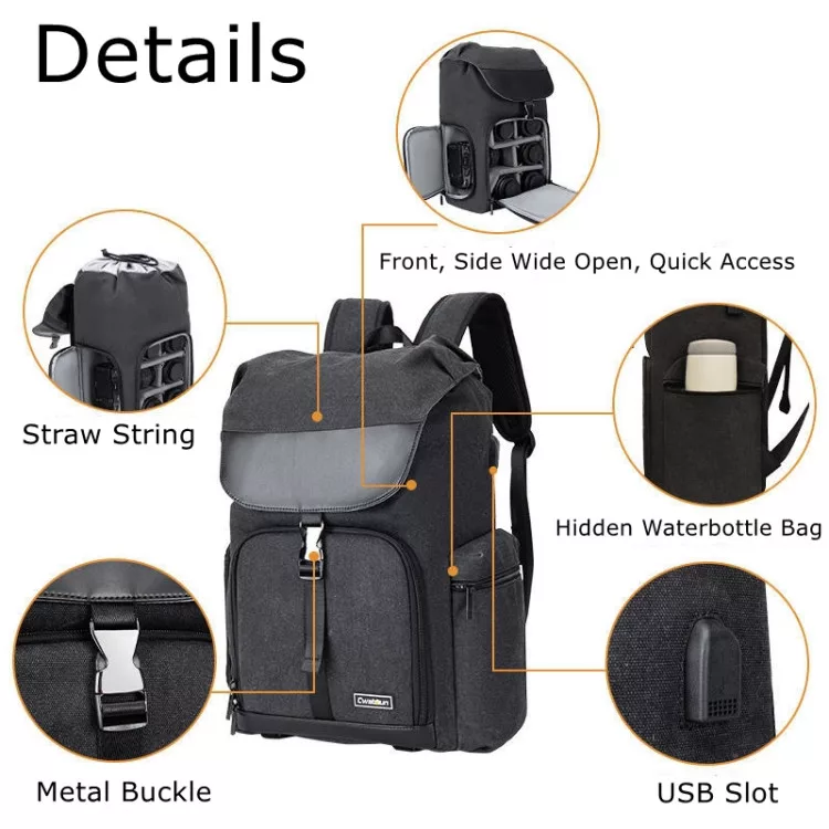 CaDen D8 32 literes Fotós hátizsák - 33*20.5*46 cm Fényképező Táska + USB port