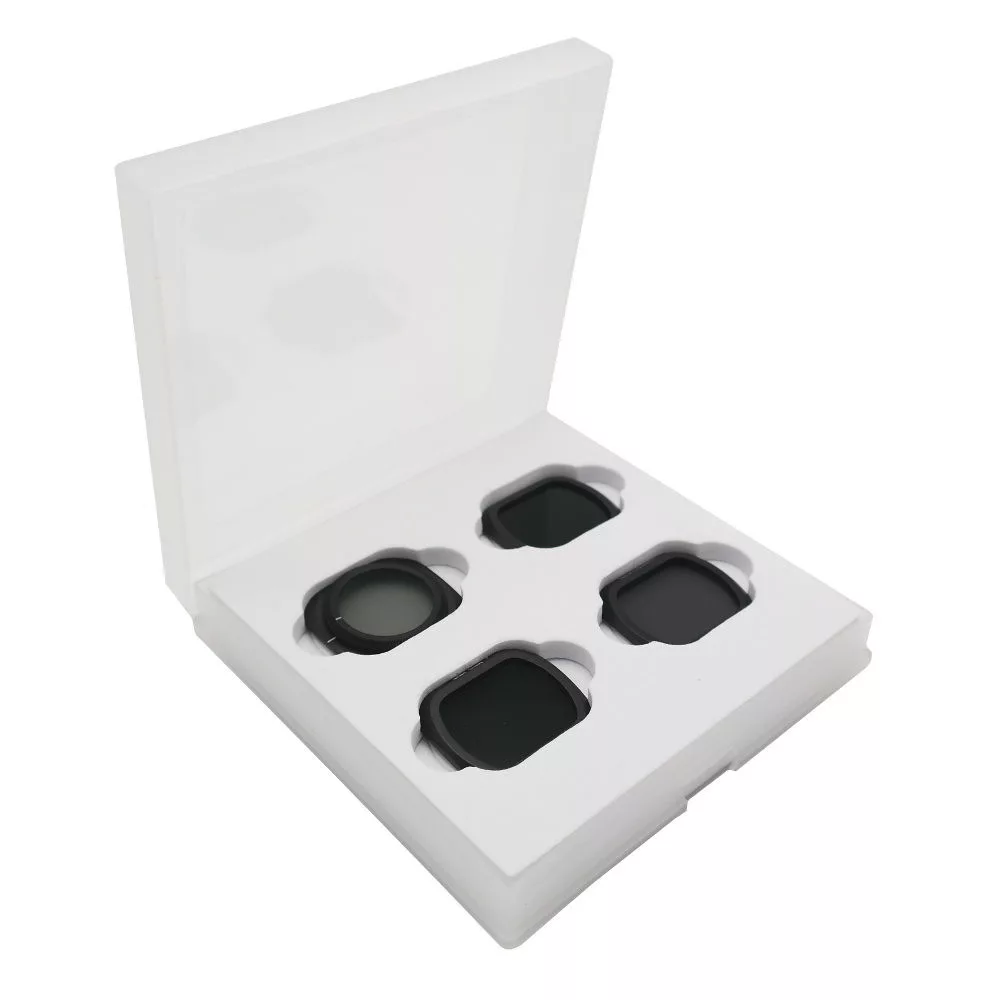 A szűrőkészlet tartalmaz egy körkörös polarizáló szűrőt, valamint ND4, ND8 és ND16 szűrőket, amelyek nélkülözhetetlenek a légi fényképezéshez és videózáshoz.