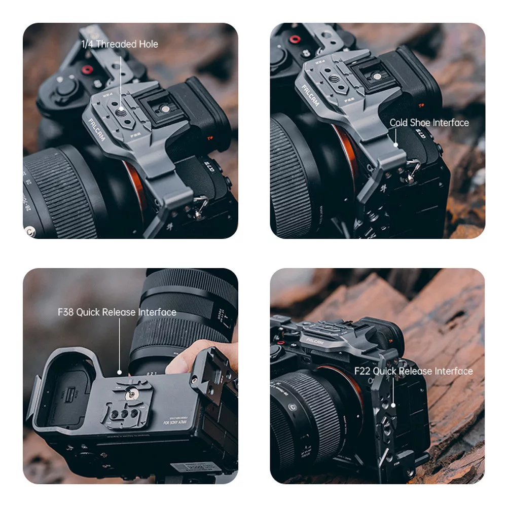 A Falcam 2824A F22 & F38 & F50 Quick Release Camera Cage V2 alkalmas a Sony A7M4 kamerarendszerhez. Ez lehetővé teszi, hogy tartozékokat rögzítsen a fényképezőgéphez, és könnyen váltson a beállítások között.