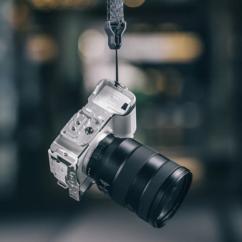 A Falcam C00B3501W Quick Release Cage egyedi tervezésű és teljes kialakítása garantálja a fényképezőgép biztonságát. Csúszásgátló párnák is vannak, nehogy véletlenül leessen a fényképezőgép, és a csuklópánt nyílásán keresztül csuklópánt is rögzíthető.