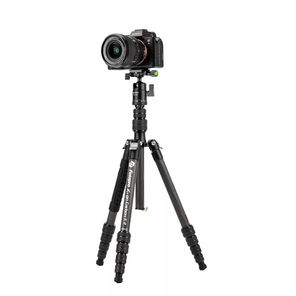 Fedezd fel a Fotopro X go Carbon E 2 könnyű, mégis masszív állványát: csupán 980 g, 8 kg teherbírással, változtatható magassággal és sokoldalú kiegészítőkkel, amelyek gyorsan alkalmazkodnak bármilyen fotós helyzethez — beltéren és kültéren egyaránt.