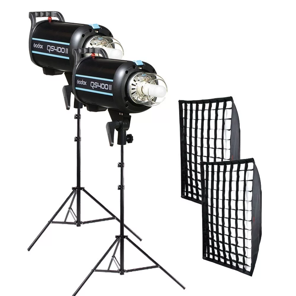 A Godox QS400II High Performance Kit egy komplett vakukészlet, amely két 400 W-os stúdiólámpából, két állítható magasságú lámpaállványból és két rácsos softboxból áll.