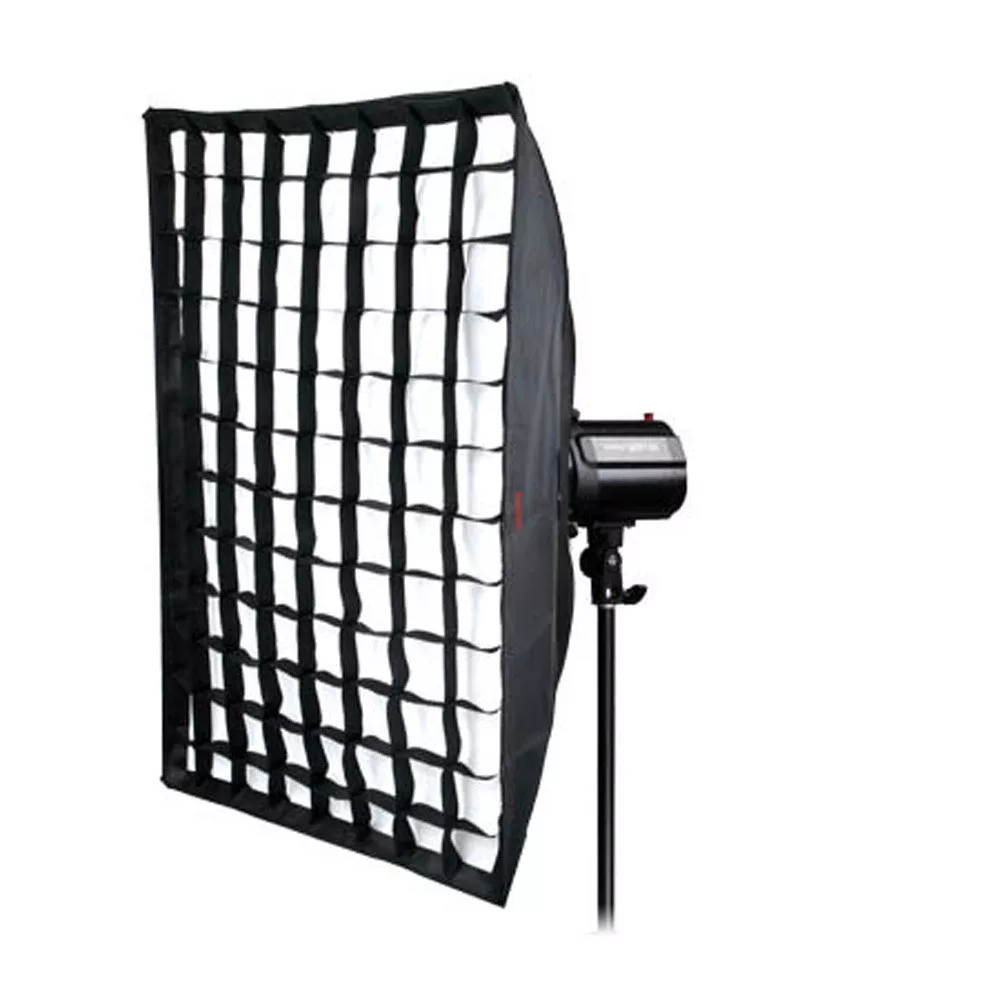 A fényszóródás szabályozására rácsot használnak. Ez különösen kis helyeken lehet hasznos. A softbox lágy fényét ez nem befolyásolja, de Ön jobban szabályozhatja a fény irányát. A rugalmas rács oldalán tépőzáras csík található, így gyorsan és egyszerűen rögzíthető.