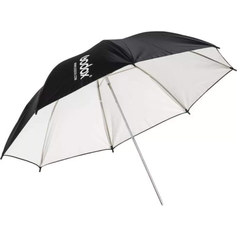 A Godox UB-002 vakuernyő belül ezüst, kívül fekete színű. Az esernyő átmérője 101 cm. Az esernyő ezüst színű felületet biztosít a villogáshoz. Ez erős vakufényt eredményez. Kiváló portrékhoz vagy árnyékolt fényképekhez.