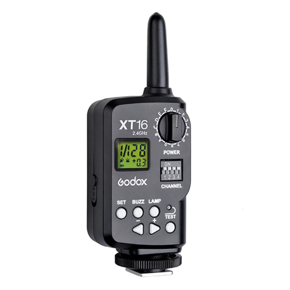 A Godox XT-16 Power Remote távirányítóval vezeték nélkül vezérelheti a Witstro sorozat, a QT sorozat, a Quicker D sorozat és a Gemini GT/GS sorozat Godox vakufejeit. A tárcsán keresztül 16 választható vakucsoporthoz férhet hozzá, A-tól F-ig és 0-tól 9-ig. Az egyes csoportok vaku intenzitását külön-külön állíthatja be az adó csatornatárcsájával. Lehetősége van egy adott flash csoport letiltására is. A vaku teljesítménye 3 Fé lépésekben állítható, 1/128-tól a teljes teljesítményig.