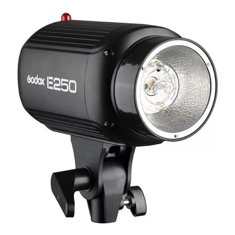 A Godox E250 vakufej fényereje húsz lépésben állítható, és átlátszó LED kijelzővel van felszerelve, amelyen leolvasható a beállított érték. A jelenet megvilágításához és a fényképezőgép egyszerű beállításához a vakufej 150 wattos modellezőlámpával van felszerelve. A modelllámpa fényereje kilenc fokozatban állítható. A teljes vakukészlet könnyen szállítható a mellékelt kerekekkel ellátott bőröndben.