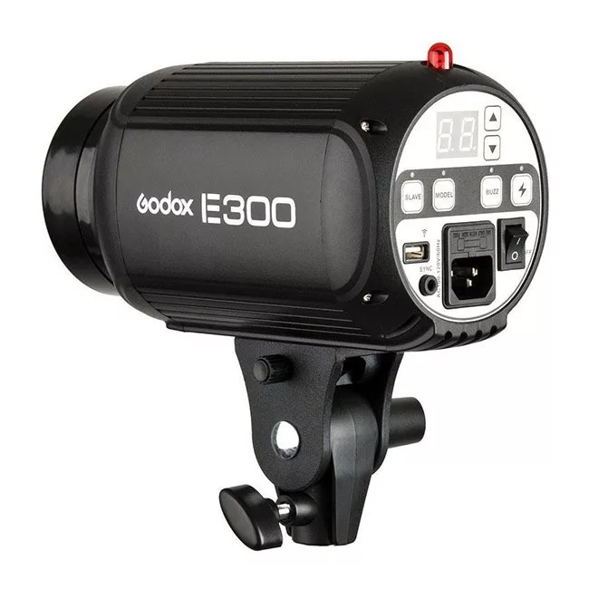 A Godox E300 vakufej fényereje húsz lépésben állítható, és átlátszó LED kijelzővel van felszerelve, amelyen leolvasható a beállított érték. A jelenet megvilágításához és a fényképezőgép egyszerű beállításához a vakufej 150 wattos modellezőlámpával van felszerelve. A modelllámpa fényereje kilenc fokozatban állítható. A teljes vakukészlet könnyen szállítható a mellékelt kerekekkel ellátott bőröndben.