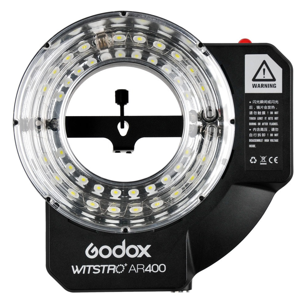 A  Godox Witstro AR400  értékes kiegészítője a népszerű Witstro sorozatú vakunak. A 400 W-os gyűrűs vaku teljesítménye és 36-os irányszáma erőteljes, árnyékmentes és egyenletes megvilágítást biztosít a téma számára egy kompakt és hordozható vázban.