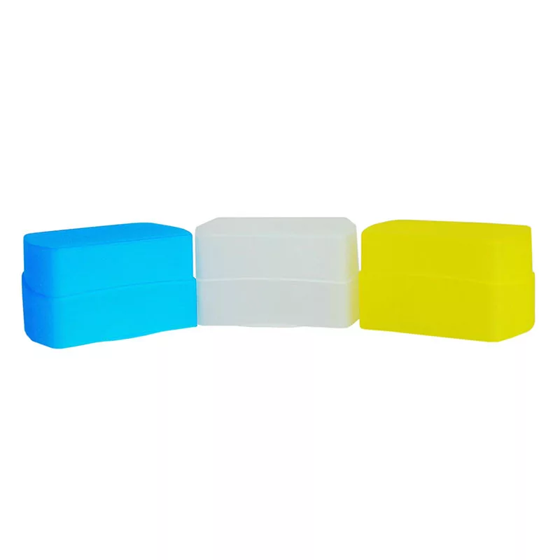 A normál diffúzor áttetsző anyagából kifolyólag lágyítja a vakufényt, csökkenti a kemény árnyékokat, így ideális beltéri és portréfotózáshoz. Az arany színű diffúzor meleg tónusokat kölcsönöz a megvilágításnak, ami különösen előnyös melegebb fényviszonyok között, vagy amikor egy természetes, naplementéhez hasonló hangulatot szeretnénk elérni. A kék diffúzor pedig hűvösebb, hidegebb fényt eredményez, amely jól használható például kültéri, árnyékos környezetben, vagy amikor hűvösebb színhőmérsékletű világítást igényel a téma.
