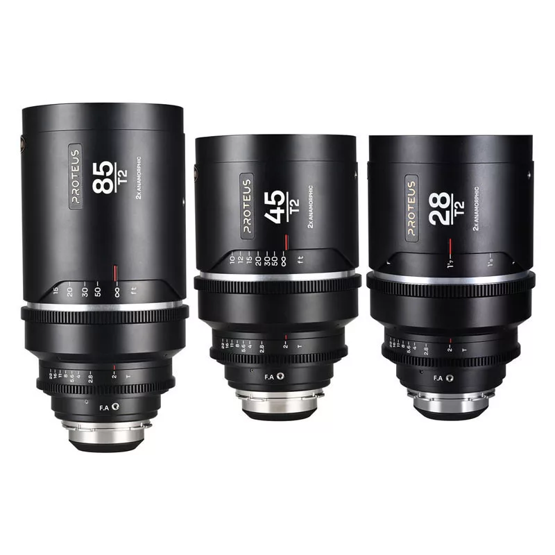 A Laowa Proteus Flex 2X Anamorphic 3 Lens Bundle Set A (28 mm, 45 mm, 85 mm) (Meters) teljes anamorfikus szettet kínál nagylátószögű, középtávolságú és teleobjektíves felvételekhez. Az állandó 2× anamorfikus összenyomás, a gyors T2 rekesz és a cserélhető flare modulok lehetővé teszik a klasszikus filmes látvány kialakítását. A metrikus fókuszskálák és a cine fogaskerekes gyűrűk gyors és pontos használatot biztosítanak, míg a Super35 / APS-C kompatibilitás és az ARRI PL + Canon EF bajonett rugalmasságot ad minden forgatási helyzethez.