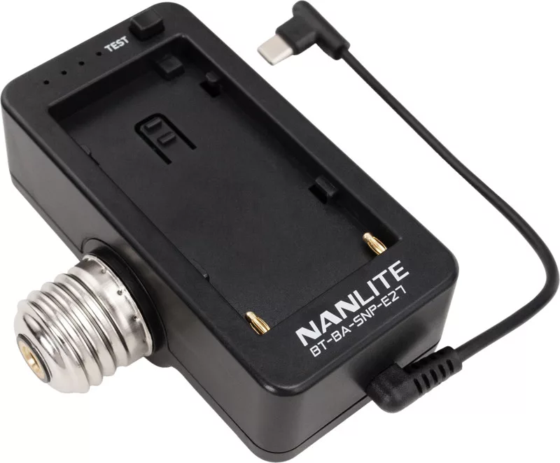 Az E27 fej kialakítása biztosítja, hogy az adapter könnyen és gyorsan rögzíthető legyen bármilyen E27-es fényforráshoz, így a Nanlite termékek széles skálájával kompatibilis. Az adapter használatával a felhasználók könnyedén váltogathatnak az akkumulátoros és hálózati üzemmód között, ami fokozza a rugalmasságot és a kényelmet a világítási beállítások során.