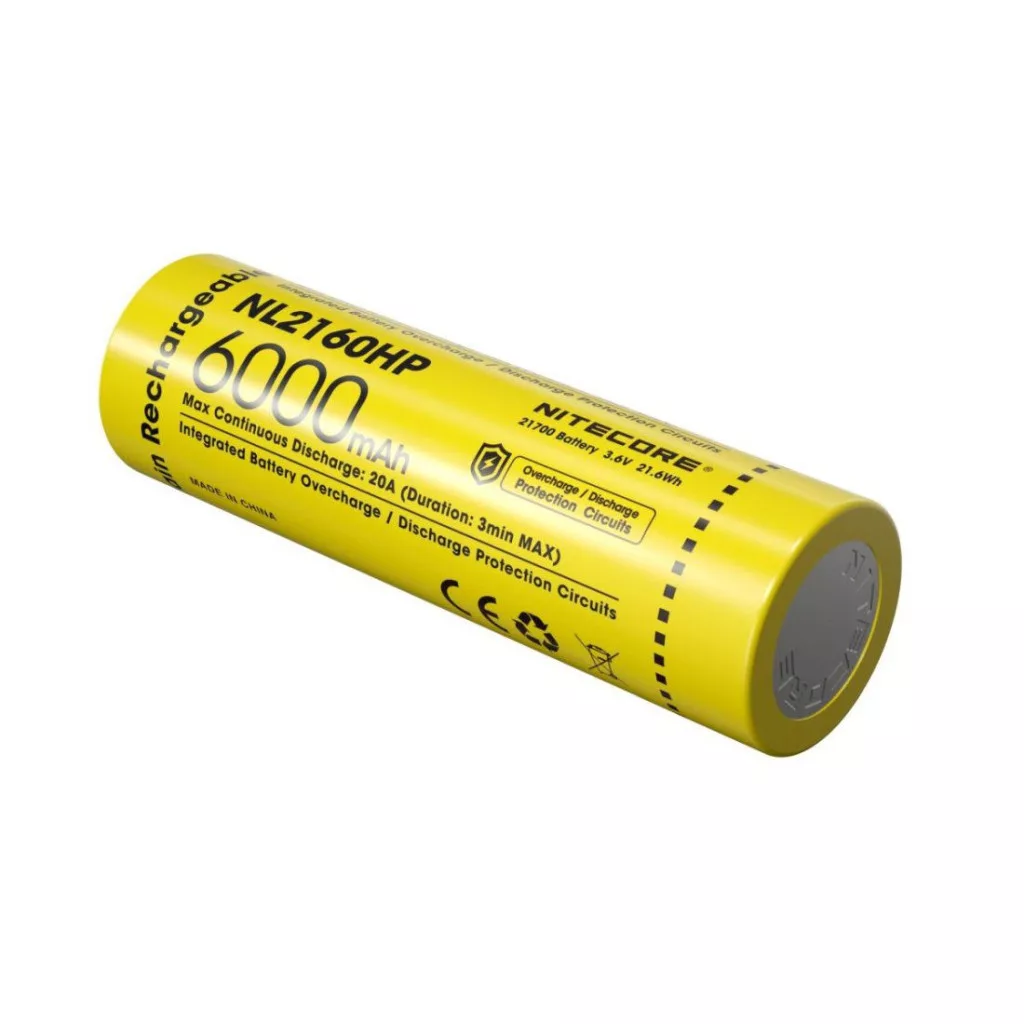 Az NL2160HP egy nagy kapacitású, 21700 méretű újratölthető akkumulátor, kifejezetten nagy energiafogyasztású eszközökhez tervezve — ideális választás erőteljes Nitecore zseblámpákhoz.