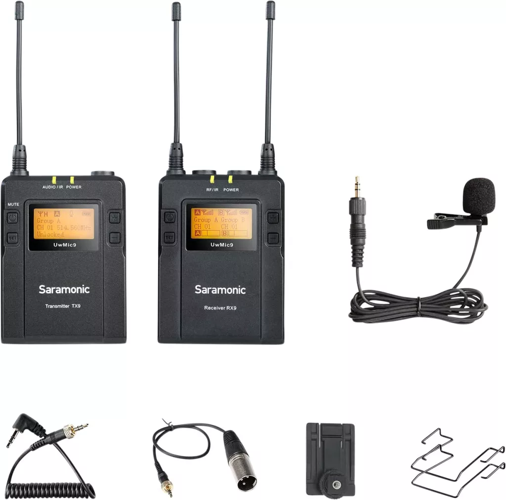 Az RX9 vevő kompakt kialakítású, és fejhallgató kimenetet tartalmaz, így valós időben is monitorozhatjuk a hangot, még akkor is, ha a kameránk nem rendelkezik fejhallgató kimenettel. A TX9 övcsomagos adó 12 fokozatú bemeneti szintszabályozóval rendelkezik, lehetővé téve, hogy pontosan beállítsuk a kívánt hangerőt. Az adó High/Medium/Low beállításokkal rendelkezik, amelyek segítenek takarékoskodni az akkumulátorral a kontrollált felvételi környezetekben. A TX9 standard 3,5 mm TRS csatlakozóval van ellátva, így többféle lavalier, headset, vagy eszközmikrofon használata lehetséges, például a prémium Saramonic DK3 lavalierekkel vagy a vízálló DK5 lavalierekkel.