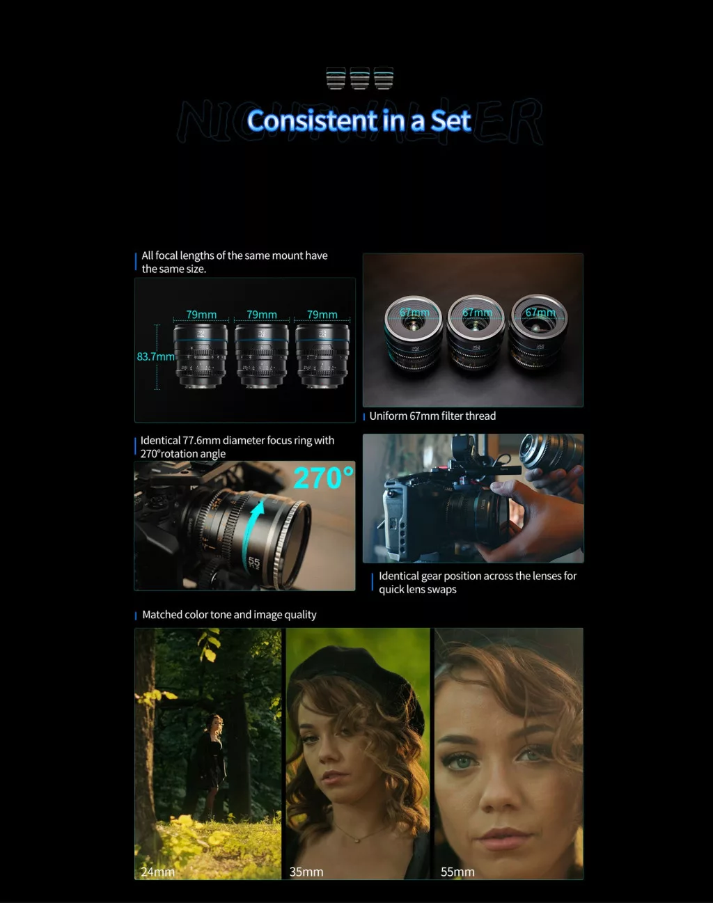 Sirui Cine Objektív Nightwalker S35 Készlet 24/35/55mm T1.2 X-Mount Fekete