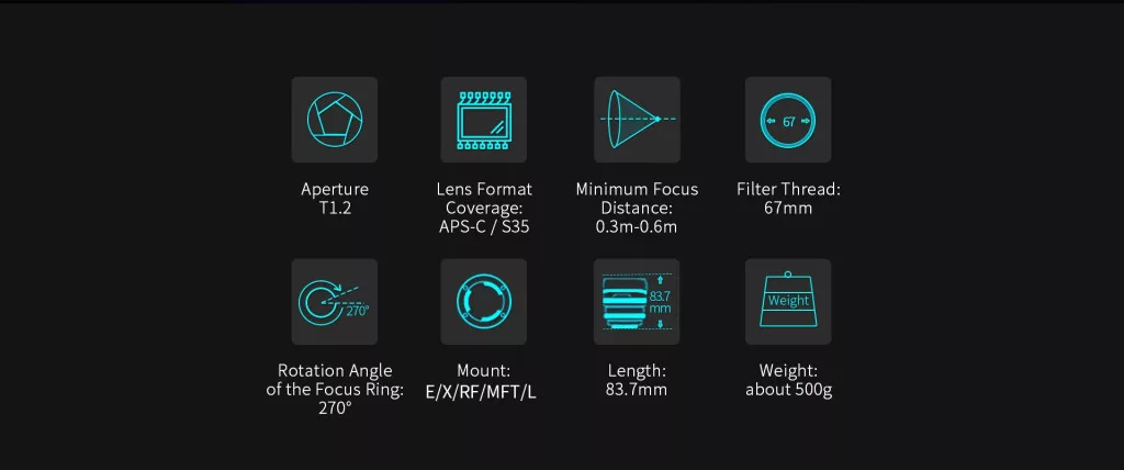 Az objektívek szoros optikai konstrukcióval készülnek, és mindegyik csupán 500g-ot nyom, így egy új korszakot indítanak a könnyű, gyors fényértékű lencsék világában. A tartós alumínium ötvözet ház megvédi az érzékeny optikai elemeket, miközben biztosítja a hosszú élettartamot és a megbízhatóságot. A készlet két színben elérhető, a klasszikus fekete és az elegáns fémes szürke árnyalatokban.
