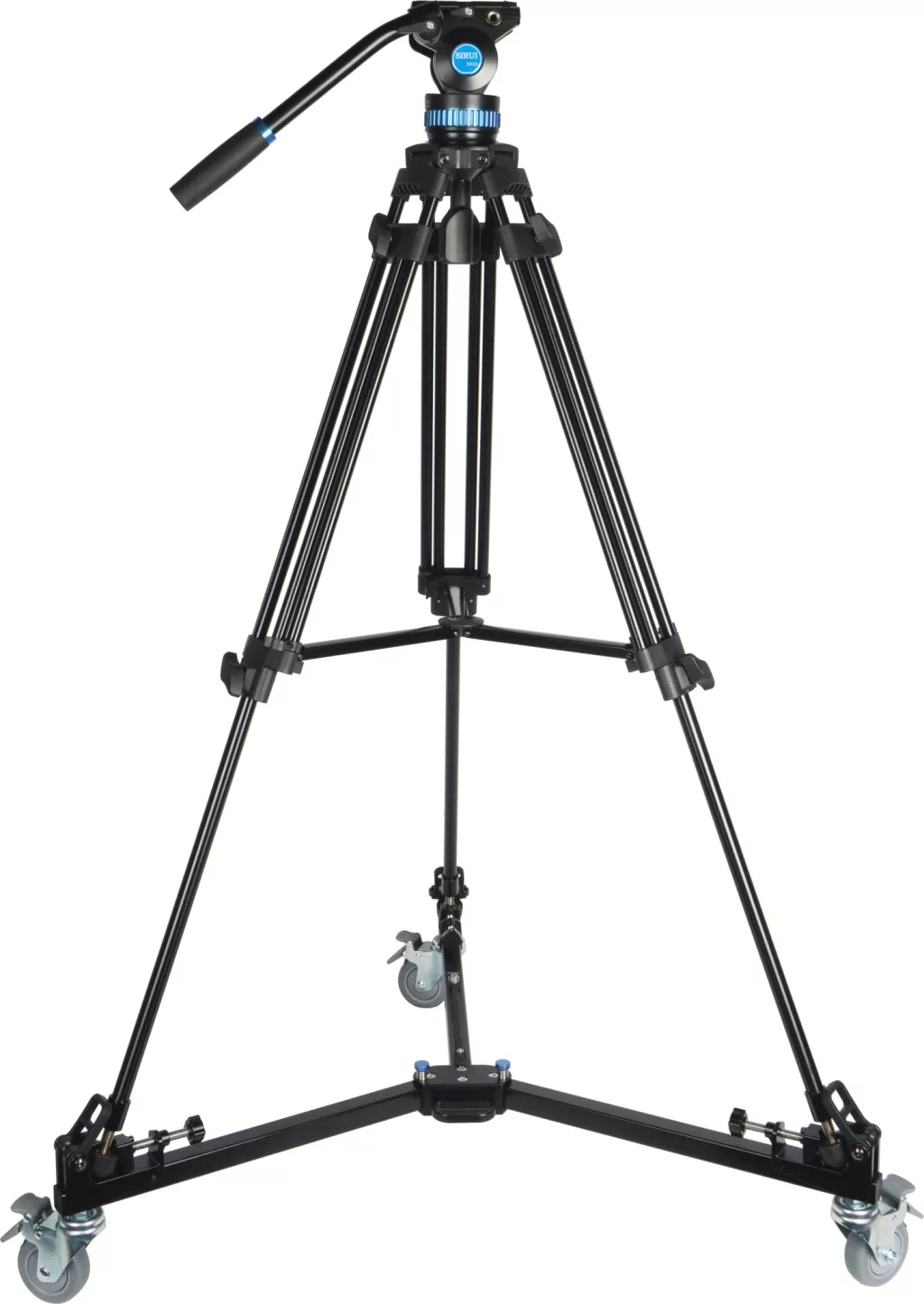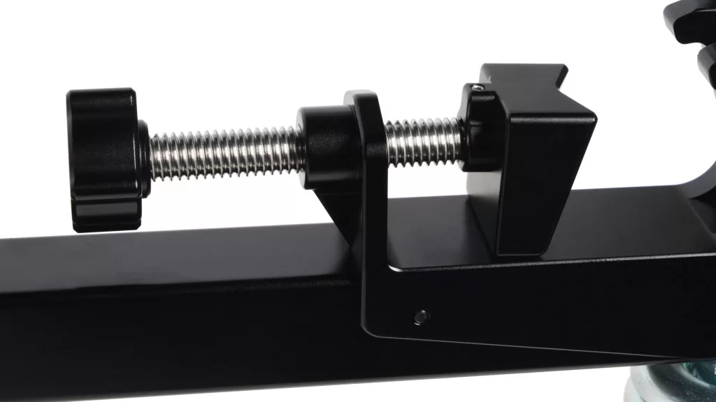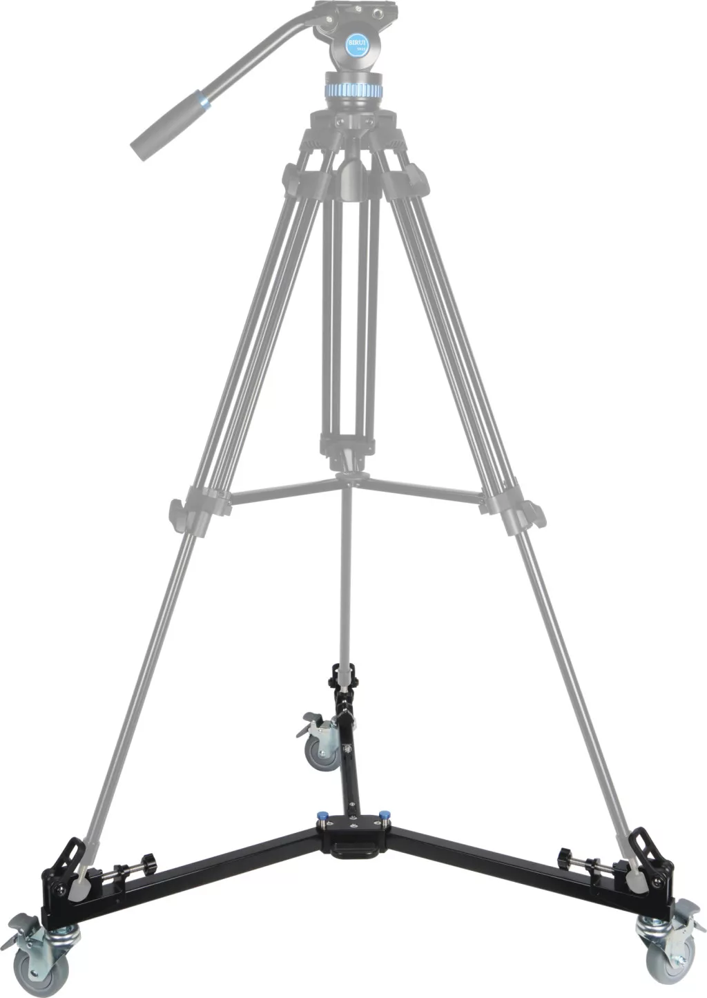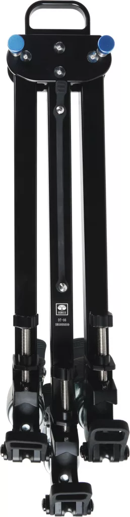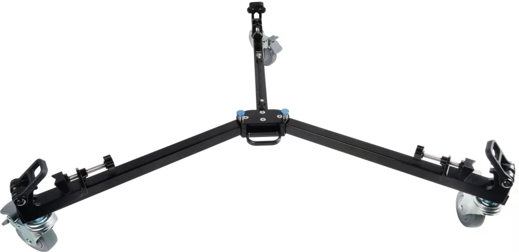 A gumi lábakkal rendelkező tripodok számára egy univerzális csúszó rögzítő rendszert biztosít, amely lehetővé teszi a tripod lábainak biztonságos rögzítését. A "doublespike" modellekhez speciális gumi csatok biztosítják a stabil rögzítést. A kerekek minden egyes darabján lévő független, ráállásos zárómechanizmusok biztosítják a nagyobb stabilitást, mivel megakadályozzák a kerekek forgását és gördülését. Az állványdolly munkaalapja 111 cm átmérőjű, és könnyen összecsukható a kompakt szállítás érdekében, miközben beépített hordozó fogantyúval rendelkezik.