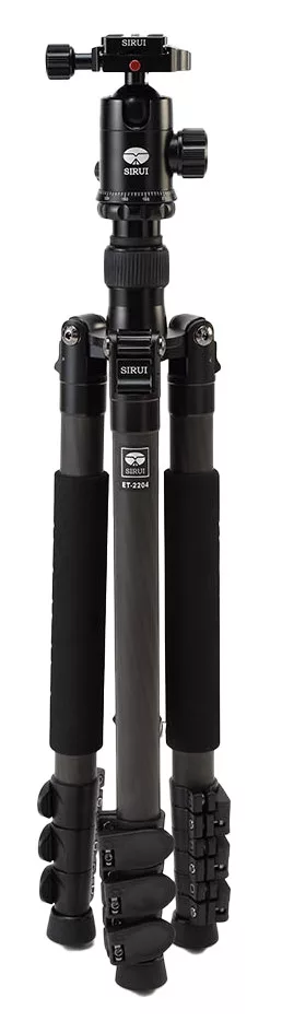 A Sirui ET-2204 állvány E-20 golyós fejjel egy rendkívül erős, mégis könnyű és kompakt fényképezőgép állvány, amely ideális választás professzionális fotósok és videósok számára, akik a stabilitás és a mobilitás egyensúlyát keresik. Az ET sorozatú állványok különlegessége, hogy a lábakat 180°-ban elforgathatjuk, így az állvány a hagyományos modelleknél sokkal kisebbre összecsukható, miközben megőrzi a szükséges stabilitást és a teherbírást. Az ET-2204 modell mindössze 49 cm hosszú összecsukva, és csak 1,9 kg súlyú, így könnyen befér egy fényképezőgép táskába, hátizsákba, vagy akár a kézipoggyászba is.