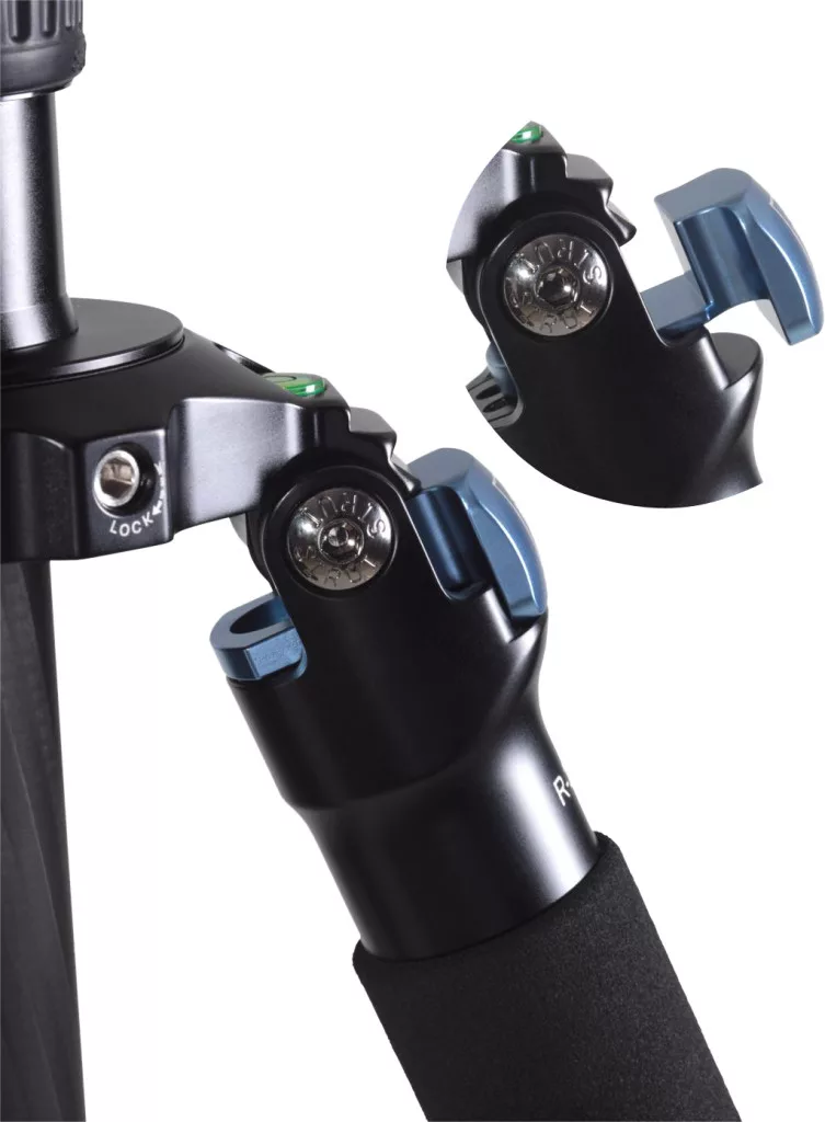 A lábak szögének automatikus zárómechanizmusa gyors és megbízható beállítást biztosít a három különböző szögben, így könnyen választható a kívánt pozíció. A hárompontos záródó platform gyors és biztos átalakítást tesz lehetővé a fotózásról a videózásra. Az állvány könnyű, 10 rétegű, 100%-os szénszálas lábai stabilitást és hosszú élettartamot biztosítanak. A sík alap, amely a csomag részeként érkezik, helyettesíthető egy 75 mm-es félgömbbel vagy egy 370 mm-es középső oszloppal, hogy növelje az állvány magasságát. A beépített vízmérték gyors vízszintes beállítást tesz lehetővé. Az állvány talpai cserélhetők: gumitalp vagy rozsdamentes acél tüske is elérhető, emellett a két lábon habszigetelés is található a kényelmesebb használat érdekében.