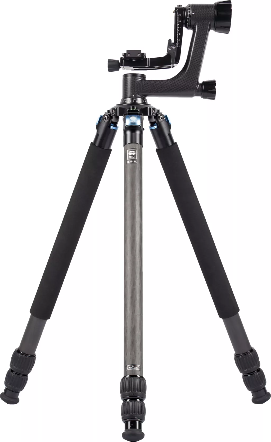 A Sirui R-3213X szénszálas állvány újra tervezett pókhálója megnöveli a stabilitást és a teherbírást. Az új szénszálas rétegek keresztirányú mintázata jelentősen növeli a stabilitást és csökkenti a rezgéseket. A lábak automatikus szögzáró rendszere gyors és megbízható szögválasztást tesz lehetővé a három beállítható pozíció között. Az állványhoz tartozik egy sík platform, amely cserélhető 75 mm-es félgömbre vagy középső oszlopra (370 mm) az extra magasság eléréséhez. A beépített vízszintes szintmérő egyszerűsíti a vízszintes beállítást, és a cserélhető gumi talpak, valamint az acél tüskék a változó terepviszonyokhoz is illeszkednek. Az állvány hossza összecsukva mindössze 51 cm, míg maximális magassága a középső oszlop használatával 180 cm.