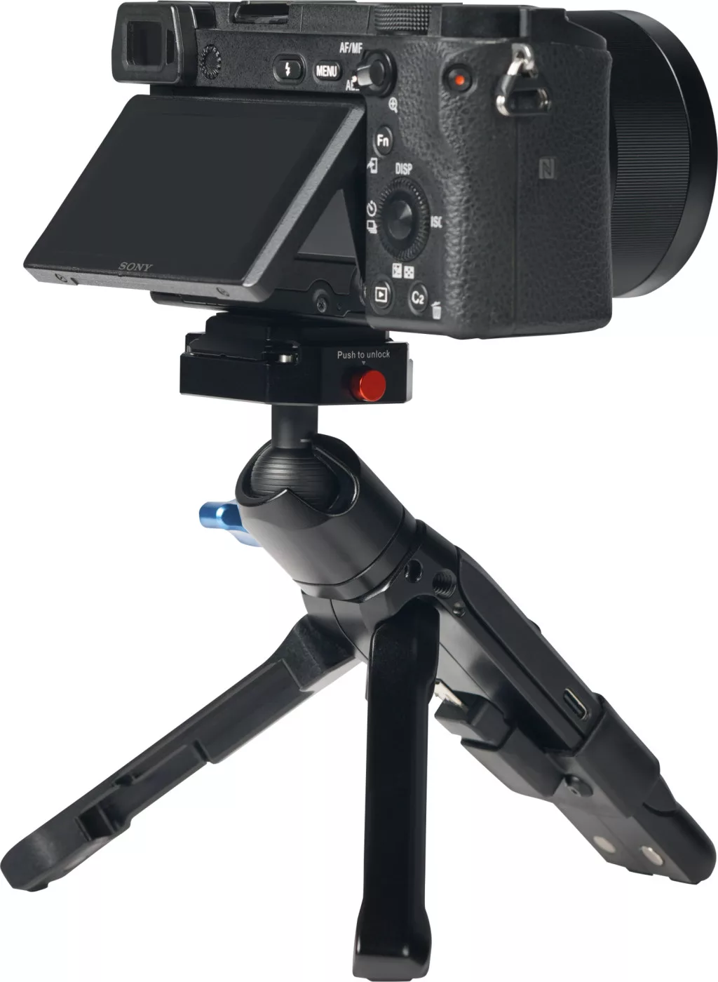 • Két az egyben dizájn: A lábak összecsukásával kézigrippé alakítható, vagy szétnyitható tripodként használható.