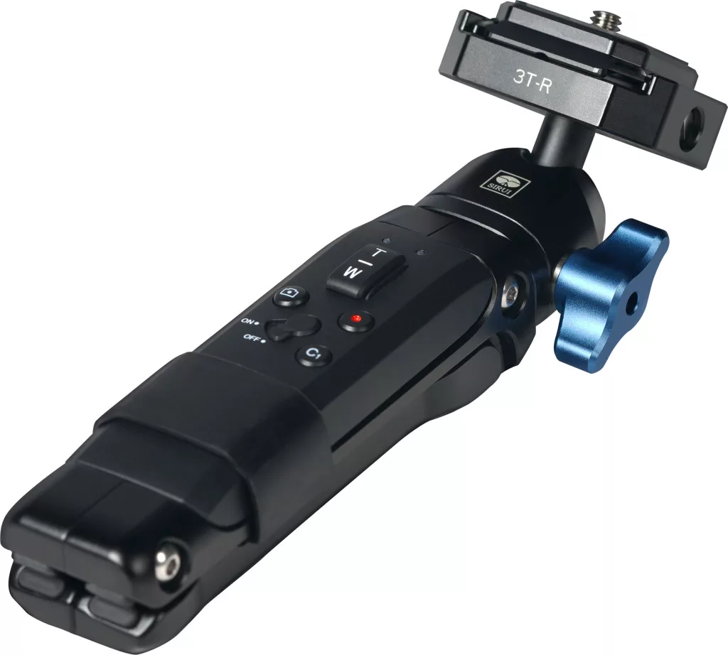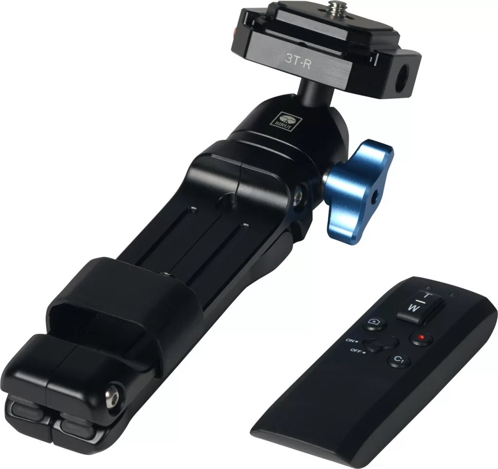 A tripod eltávolítható távirányítóval rendelkezik, amely lehetővé teszi, hogy akár 10 méteres távolságból is irányítsuk a fényképezőgépet. A távirányító segítségével kényelmesen végezhetünk el különböző műveleteket, mint például a fényképezés, élesítés, vagy zoomolás. A Sirui 3T-R asztali állvány egyedülálló két az egyben dizájnnal rendelkezik: a lábakat összecsukhatjuk, így kézigrippé alakíthatjuk, vagy szétnyithatjuk őket, hogy tripoddá váljon. A gyorskioldó rendszer lehetővé teszi, hogy a fényképezőgépet egyszerűen és gyorsan rögzítsük az állványhoz.