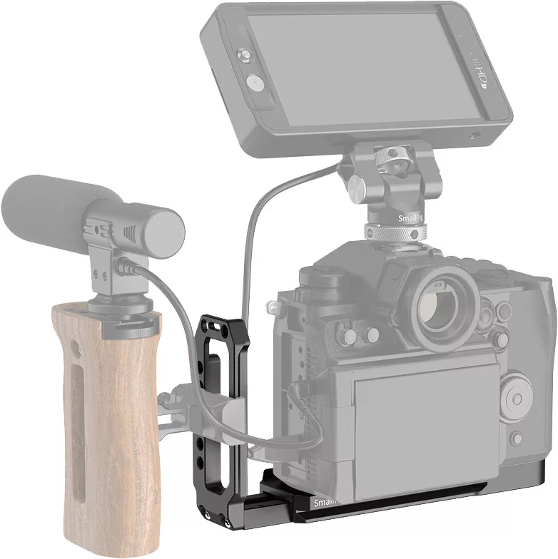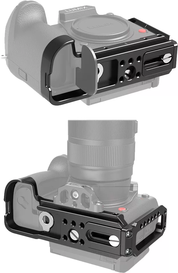Modular designed with anti-twist flanges to keep the camera from twisting and provide a comfortable grip to support pinky.A SmallRig 2655 L-konzol a Panasonic S1H fényképezőgépekhez egy moduláris kialakítású, kiváló minőségű tartozék, amely hatékonyan megakadályozza a fényképezőgép elforgását, miközben kényelmes fogást biztosít, így ideális támogatást nyújt a kisujjnak is.