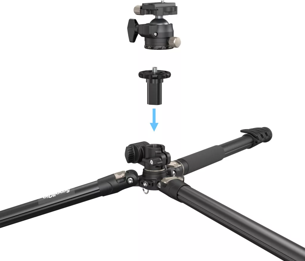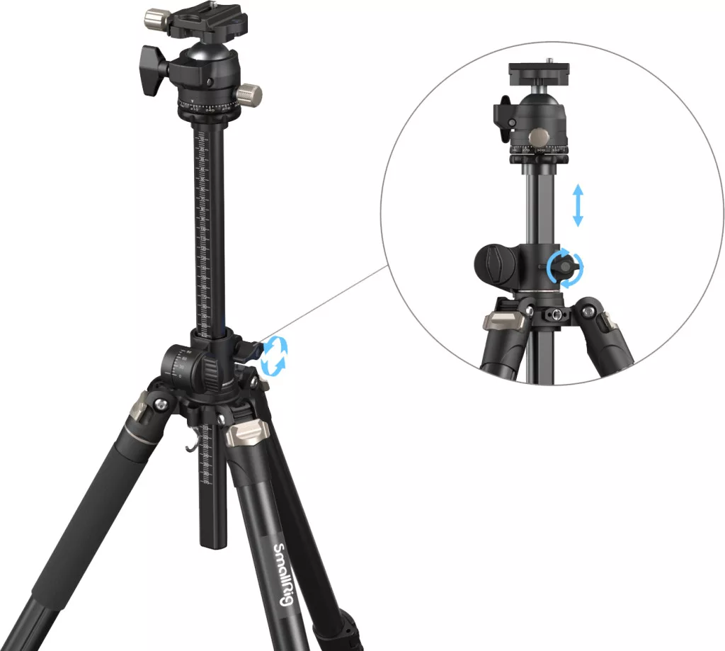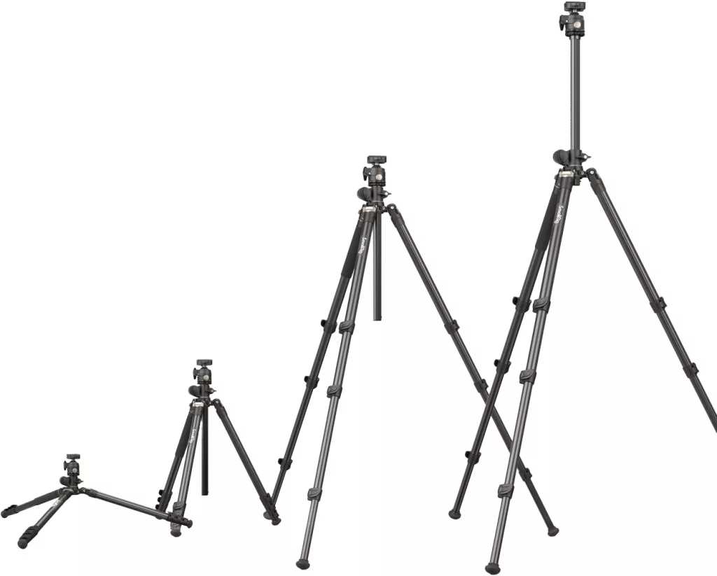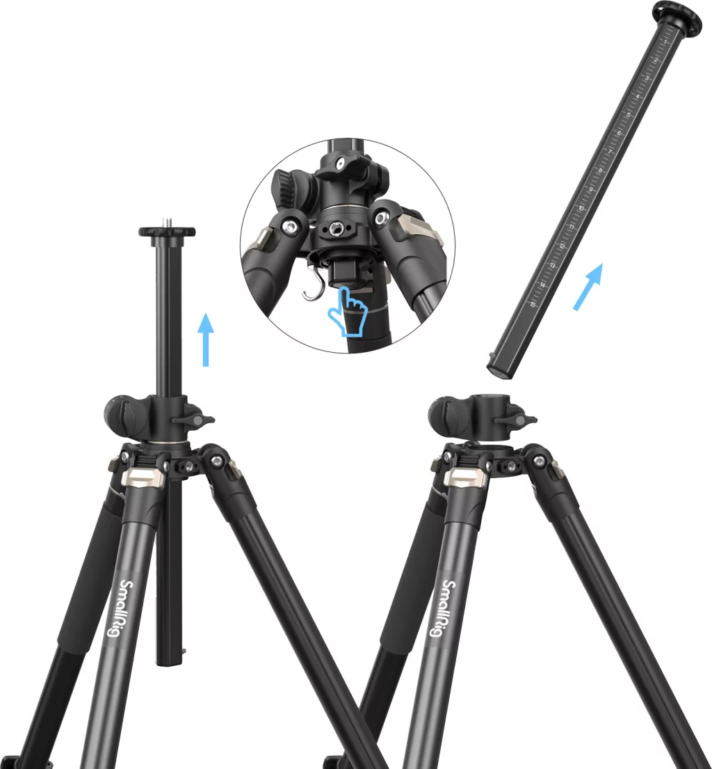 • Rugalmas, gyorsan módosítható lábak: Magasság 185 cm-ig állítható, alacsony szögű felvételekhez a középső oszlop megfordítható.