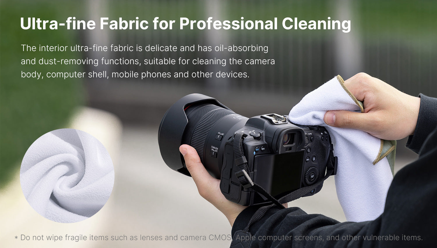 Ultrafinom szövet a professzionális tisztításhoz: A belső ultrafinom szövet finom, olajelnyelő és poreltávolító funkcióval rendelkezik, alkalmas a fényképezőgép testének, számítógépházának, mobiltelefonjainak és egyéb eszközeinek tisztítására. Zöld szín a könnyű szervezéshez és a gyors azonosításhoz
