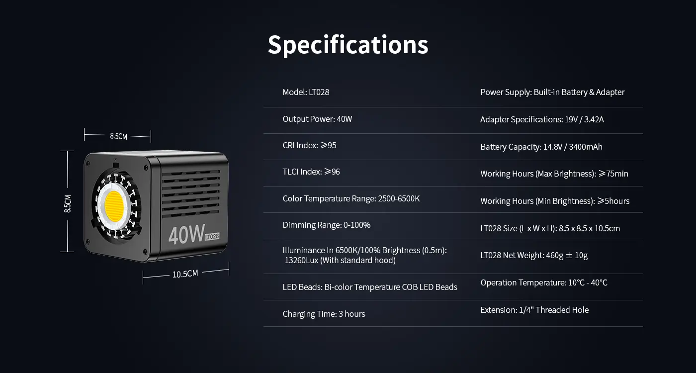 A lámpa ötvözi a professzionális minőséget, erőteljes fényerőt és sokoldalúságot, lehetővé téve a kreatív és hatékony munkát bármilyen fényviszonyok között.
