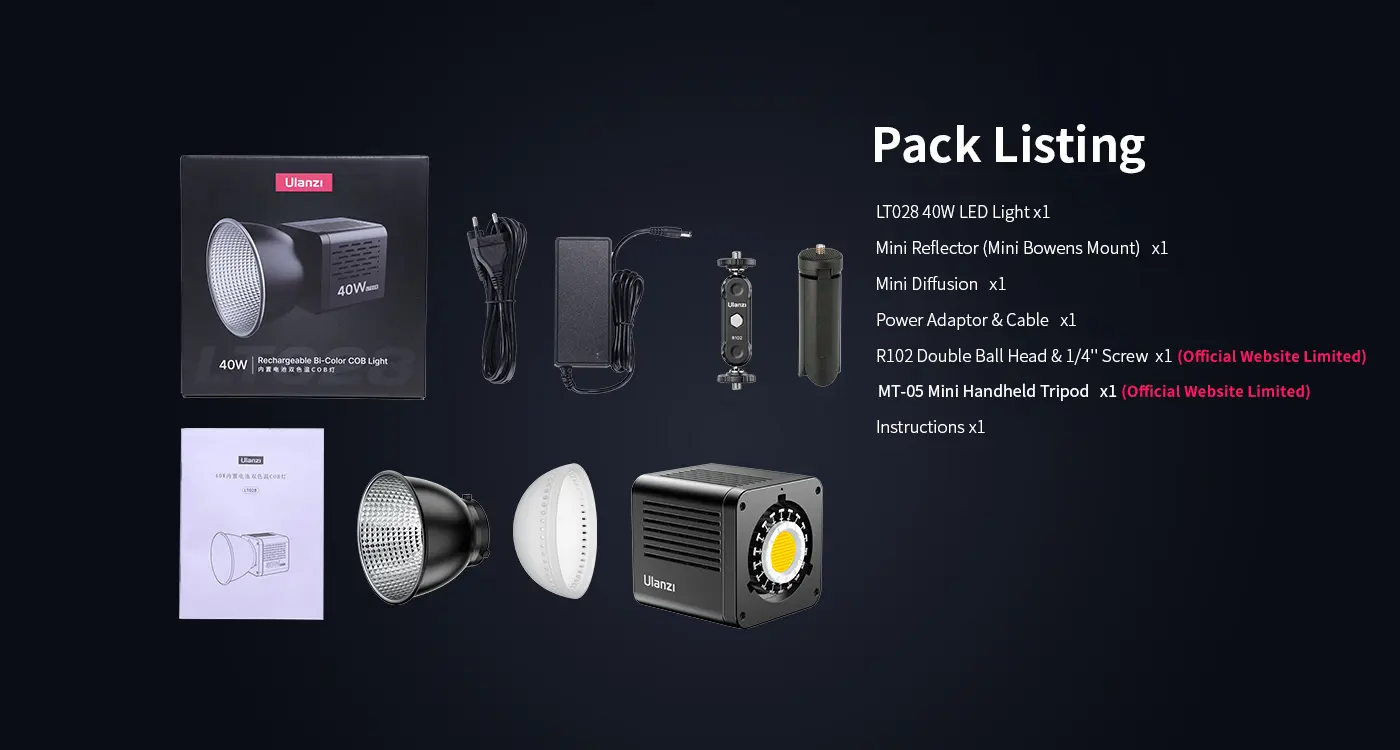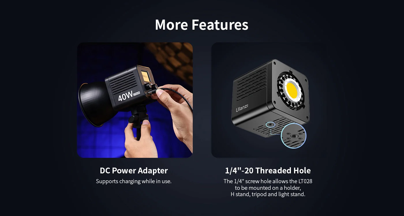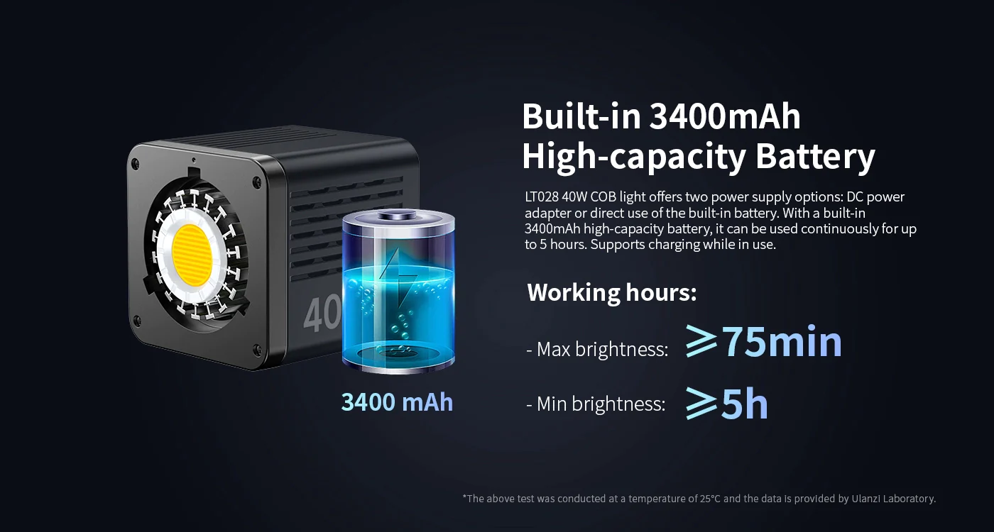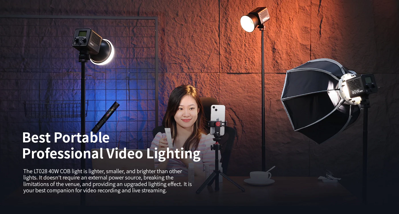 Ulanzi LT028 COB Stúdió LED-Lámpa -40W 13260LUX 2500-6500K 3400mAh LED Kit