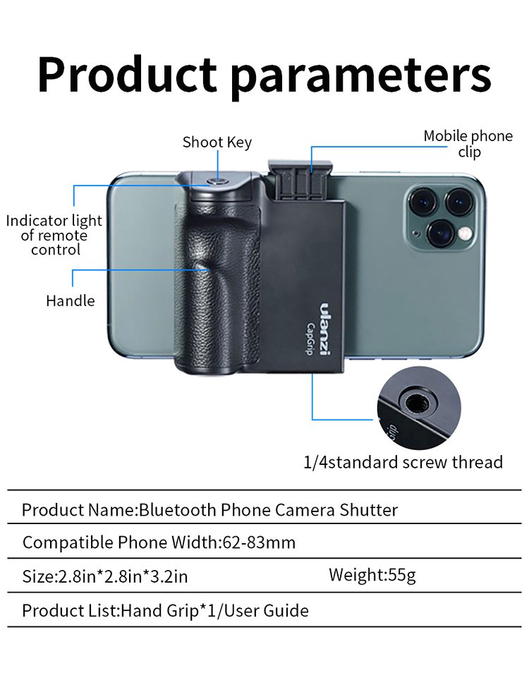 Használd a Huawei, Samsung, Apple iPhone, LG OnePlus vagy Google Pixel okostelefonodat mint profi fotós az Ulanzi Bluetooth markolat segítségével, segítségével stabilan meg tudod markolni a telefonodat redukálva az esetleges bemozdulásokat vagy ghosting effektet hosszabb expozíciók esetén. Az 1/4" csavaros aljzatán keresztül pedig bármilyen állványra fel tudod szerelni.