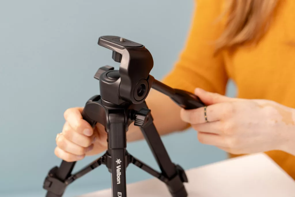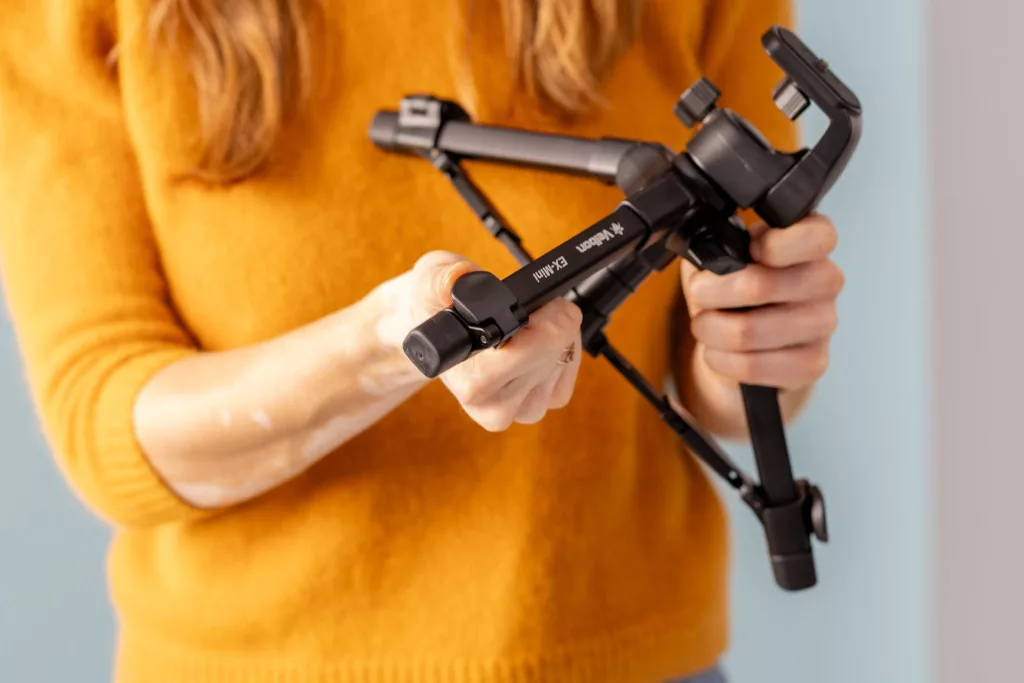A tripod egy 2-irányban forgatható fejjel van felszerelve, amely lehetővé teszi a könnyű és pontos beállításokat mind fényképezés, mind videó készítése során. Az EX-Mini fejlesztései közé tartozik a gyors lábzáró rendszer, amely egyszerűsíti a beállítást és a stabilitás biztosítását a fényképezés során. A lábak alatt található gumitalpak segítenek megakadályozni az állvány elcsúszását és biztosítják annak stabilitását különböző felületeken.
