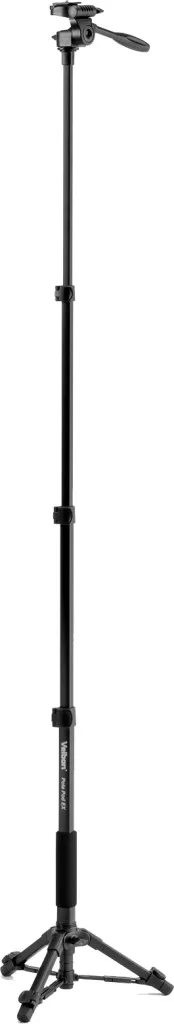• Nagy magasságú és kompakt kialakítás: A Velbon Pole Pod EX egy négy részből álló monopod és két részes állvány kombinációja, amely 187 cm magasságig állítható.