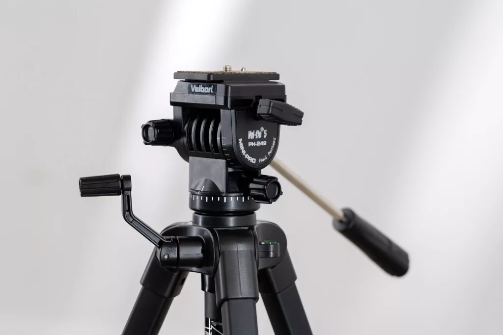 • Olajjal felfogott, kétirányú panorámafej (PH-248): Lehetővé teszi a vízszintes panning és a függőleges dőlés mozgását.