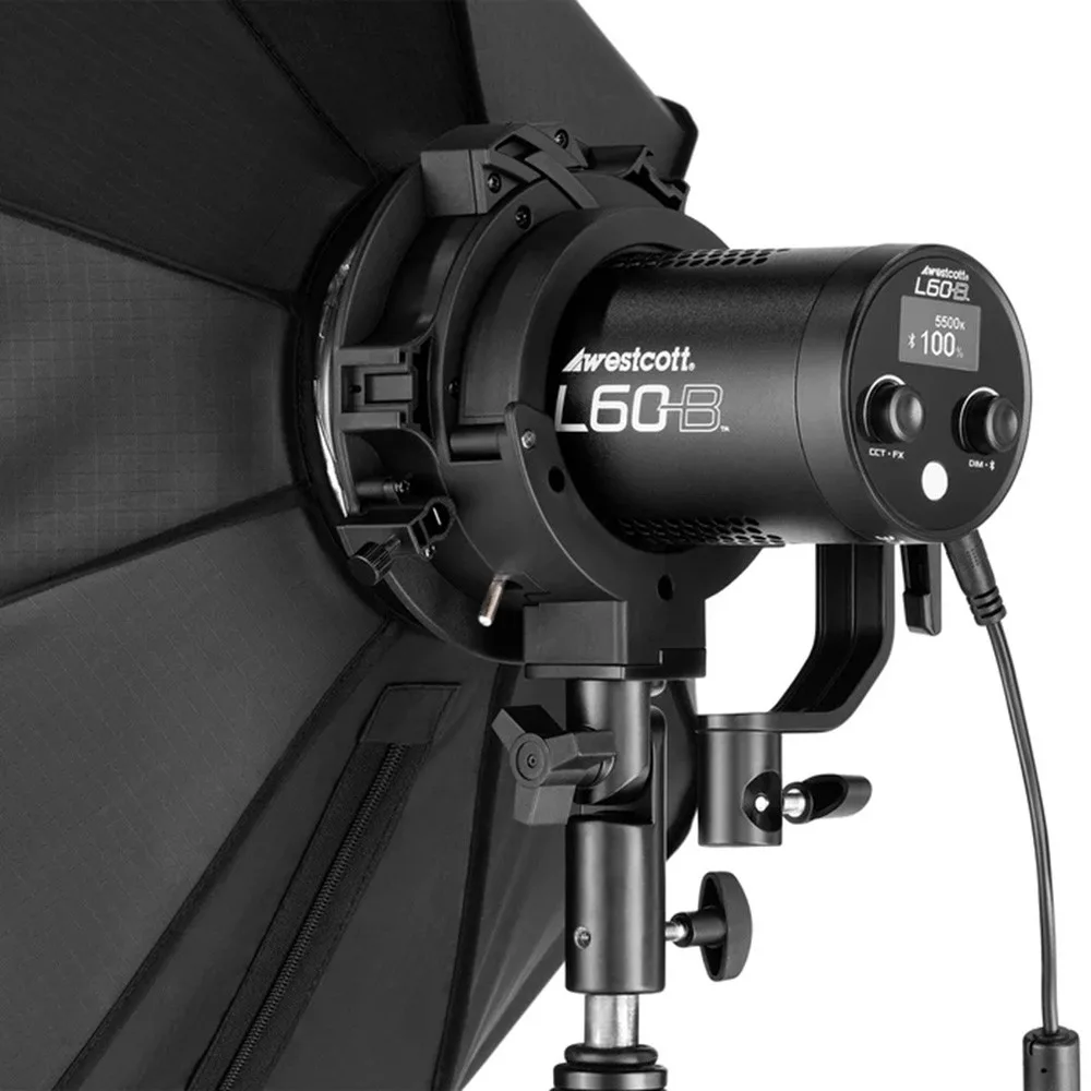 • Univerzális illeszkedés kompakt lámpákhoz: állítható pánt 6.9–8.6 cm átmérőjű fényforrásokhoz (pl. Westcott FJ80, FJ200, L60 B COB).